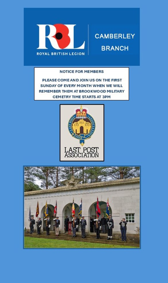 JOIN US AT THE LAST POST AT BROOKWOOD MILITARY CEMETRY RAF MEMORIAL 3PM ON THE FIRST SUNDAY OF EVERY MONTH