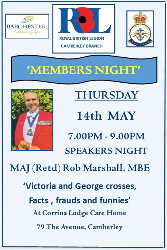 We will be holding a ‘Meet our President night’ at our next Members Night to be held on the Thursday 12th March at Corinna Lodge Care Home, in The Avenue, Camberley. This will give members a chance to meet Paul. Representatives from our Affiliated Cadet Units and invited guests will also be welcome to attend. Patrick T Mathe RBL Camberley Branch Chairman.