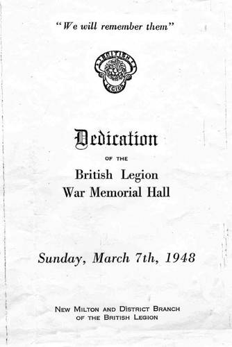 New Milton British Legion branch started in 1928. At a meeting held on April 19th 1928 in the Milton Hall, it was agreed to form a local branch.