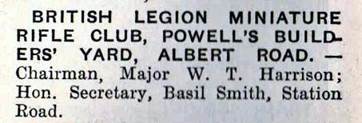 In addition, there was a branch rifle club that met at Powell’s builders’ yard in Albert Road for target rifle competitions.