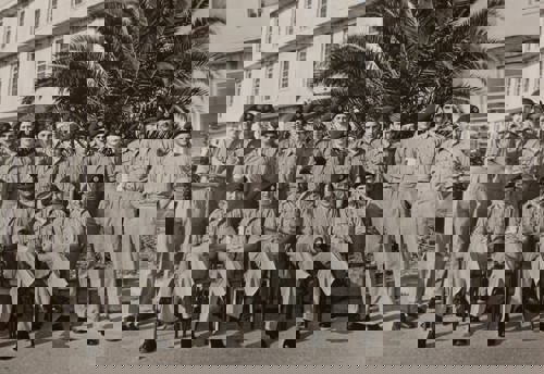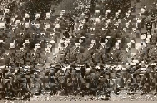 | The first of our 'recollections' is a story provided by Geoff Matthews, circled above, who was Petty Officer on HMS Pearl when it rescued over 50 members of the crew of the British merchant Dumfries, while on convoy duty in 1942. |