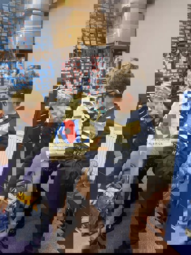 On 24 March 2026, some of the committee welcomed lovely Ben & his mum, Liz, to our Poppy room. Ben is completing a project, loves history and came to talk to us about Remembrance and ask questions. He was thrilled to talk to our Branch President, Squadron Leader John B Robinson AFC* Rtd., and Tony Semaine, local historian and ex-RAF serviceman who served in Gibraltar, who each presented Ben with a book.
