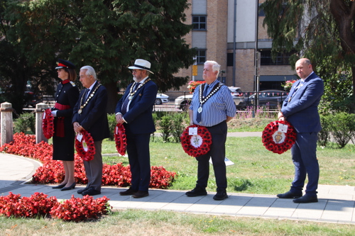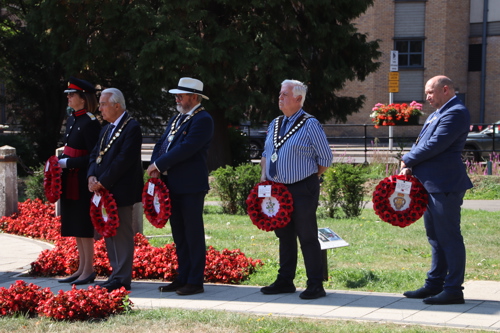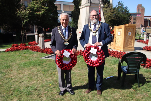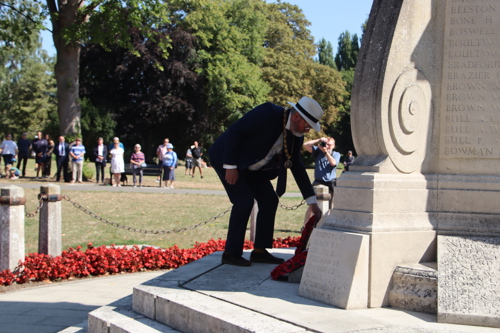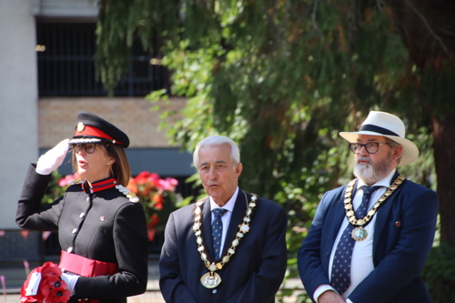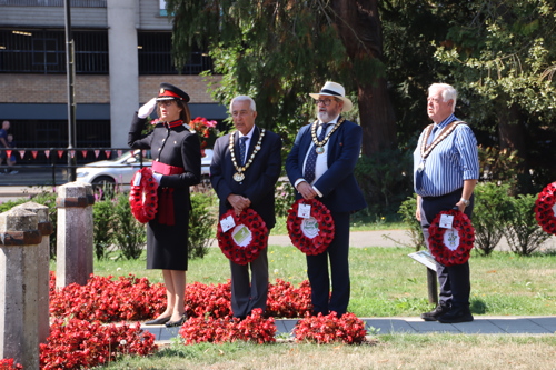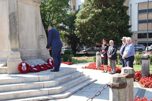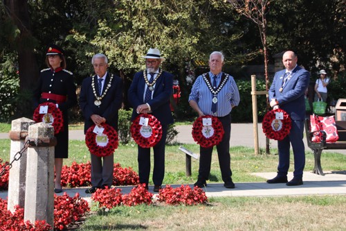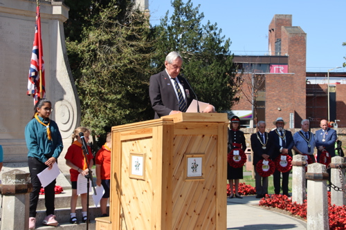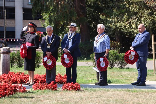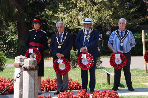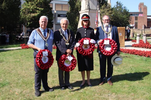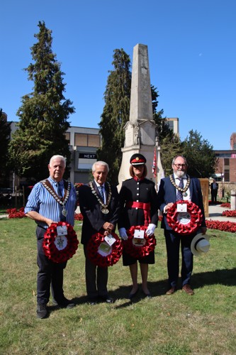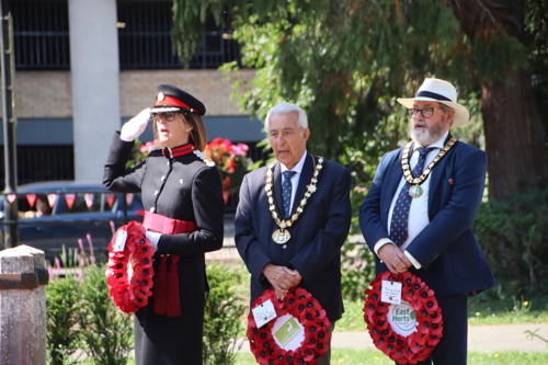 Wreath layers were: Hertfordshire Deputy Lieutenant Emma Robarts, Hertfordshire County Council Chairman Cllr. Laurence Brass, East Herts District Council Chairman Cllr. Martin Adams, Bishop's Stortford Town Mayor Cllr. Richard Townsend and RBL Bishop's Stortford Branch Chair Paul Vile.