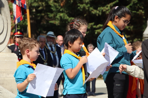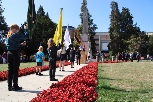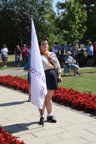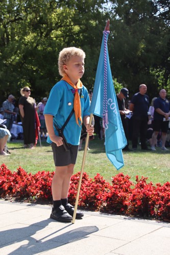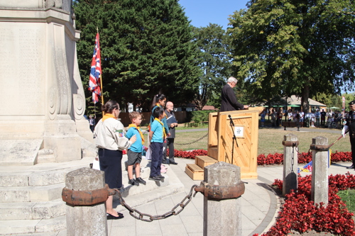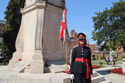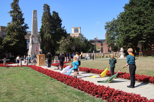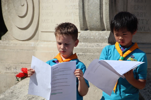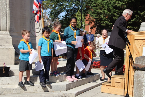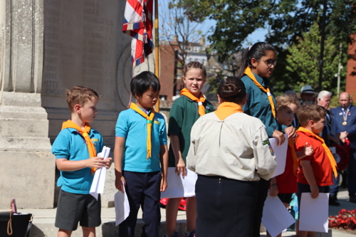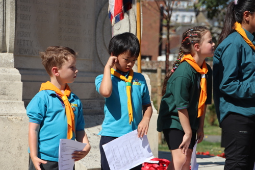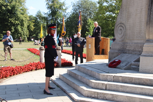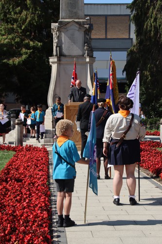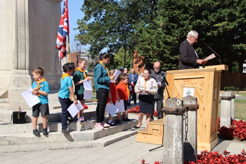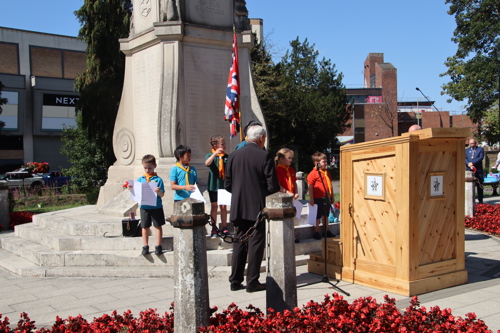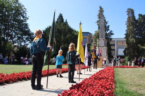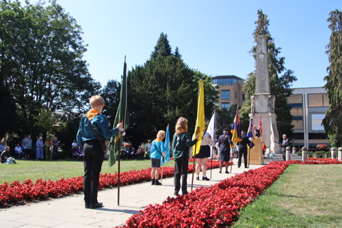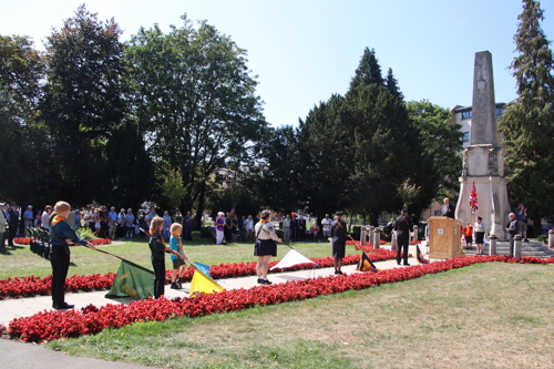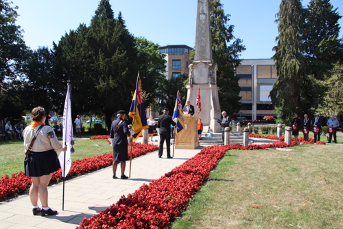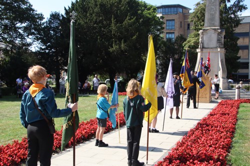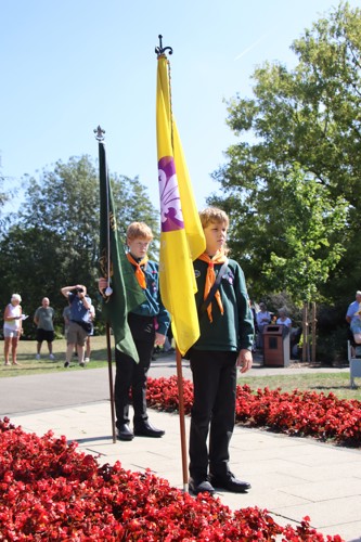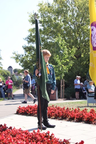 Silver Leys Scouts took it in turns to read a poem, "But we fought on..." organised by their Scout Leader and Standard Bearer Zoe Maidment. RBL Bishop's Stortford Branch Standard Bearer, Mark Thornewill, and RBL Women's Section Standard Bearer, Alison Mitchell, also did us proud, especially in the exceptional heat.