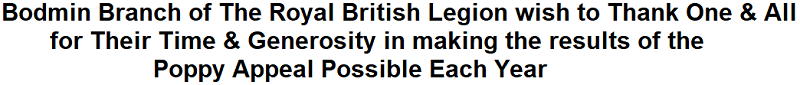 The Poppy Appeal in Bodmin Anyone interested in helping in the next Poppy Appeal should contact Ed Wiles on 07541 976364