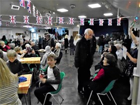 And whilst all this was going on, there was a mini cinema up the stairs alongside the stage showing a continuous stream of historical images from Byfield's 3,000 picture photo collection. It was also a good venue for unveiling Byfield's Memorial Bench, which will be placed on "Vera's Triangle" outside the church overlooking The Brightwell recreation ground.