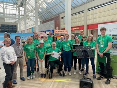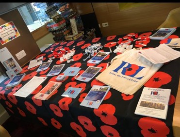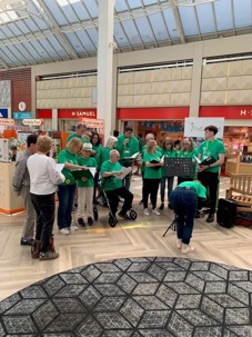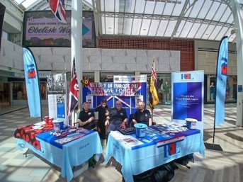 We set up our display opposite the Primark entrance in the town square our main collection during the day was for our memorial benches appeal. Primark were also raising funds for us, with the staff making home made cakes and selling them they collected and donated £70 a wonderful result we want to thank them for all their hard work. During the Day the Sea Cadets Joined with us to help with our setting up and with collections throughout the day. They were fantastic. We also had entertainment provided by a wonderful choir who sang songs, they were magnificent, and we thank them. The Choir was run by Clare Lynskey.