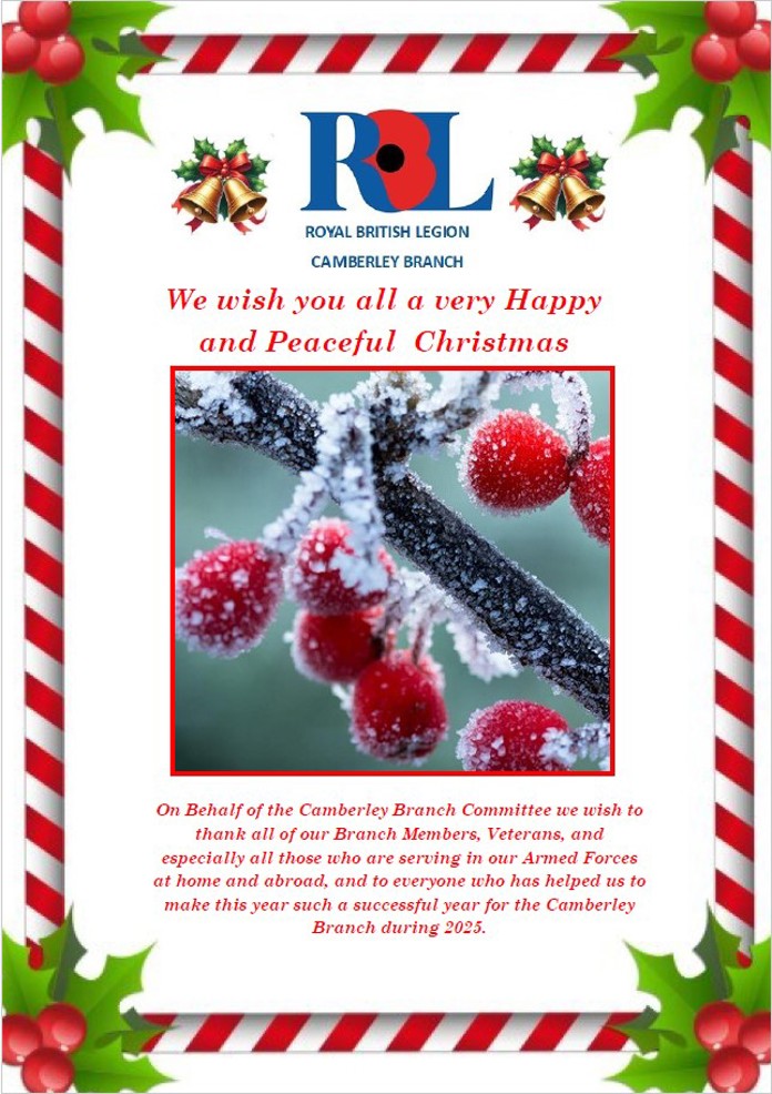 The poppy appeal will take place as normal in 2025, as will Remembrance Sunday service and Parade to the Memorial. More details to follow.