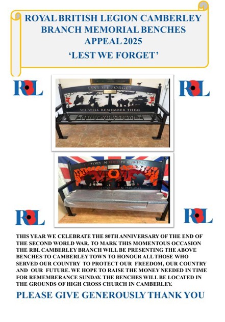 RBL CAMBERLEY BRANCH LAUNCHES MEMORIAL BENCHES APPEAL