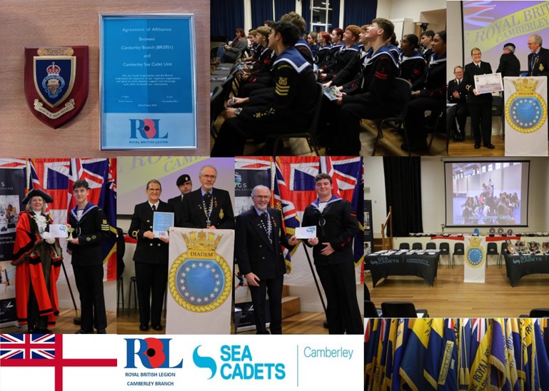 THE RBL CAMBERLEY BRANCH BECAME AFFILIATED WITH CAMBERLEY SEA CADETS UNIT WHICH TOOK PLACE ON 12th DEC AT KINGS COLLEGE IN CAMBERLEY