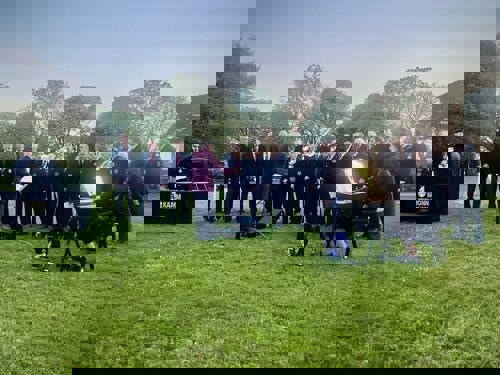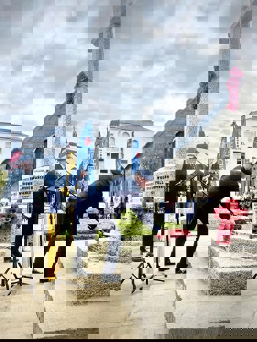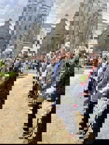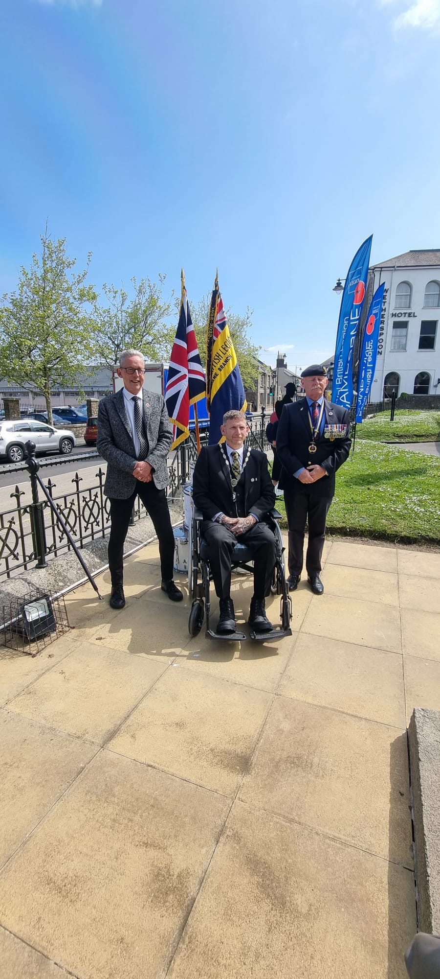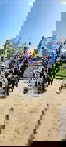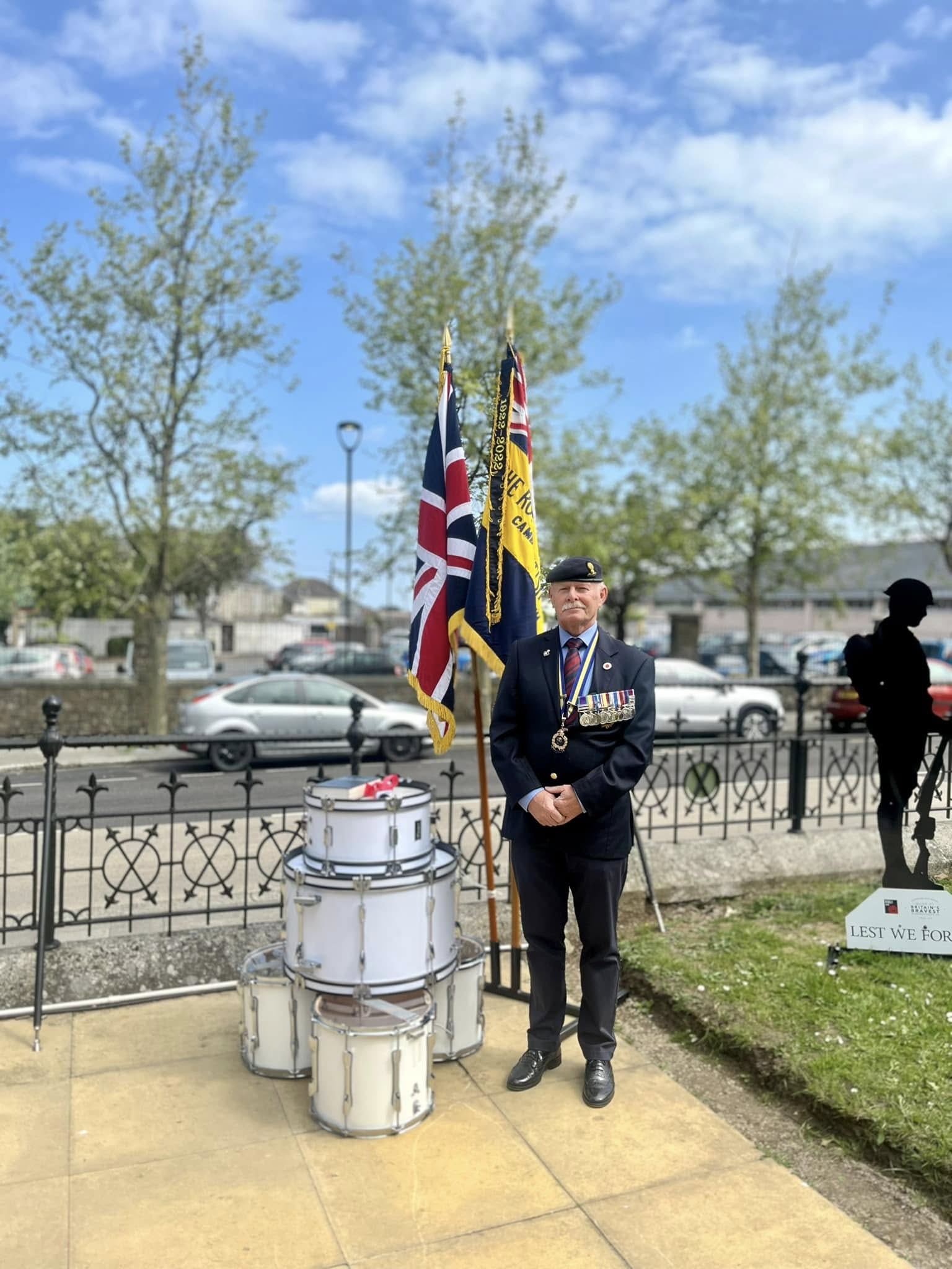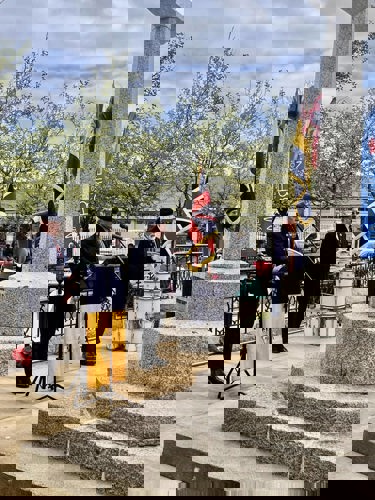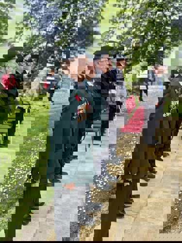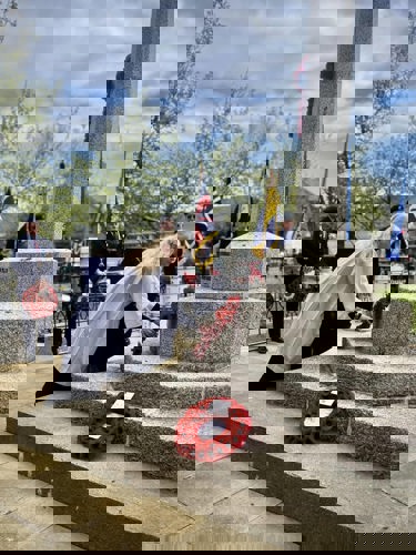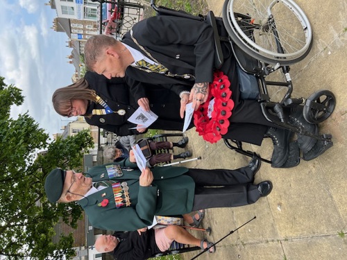 Camborne's VE Day 80 commemorations started at 9am with the raising of the VE Day 80 flag above the Passmore Edwards Building with the VE Day proclamation by the Mayor.