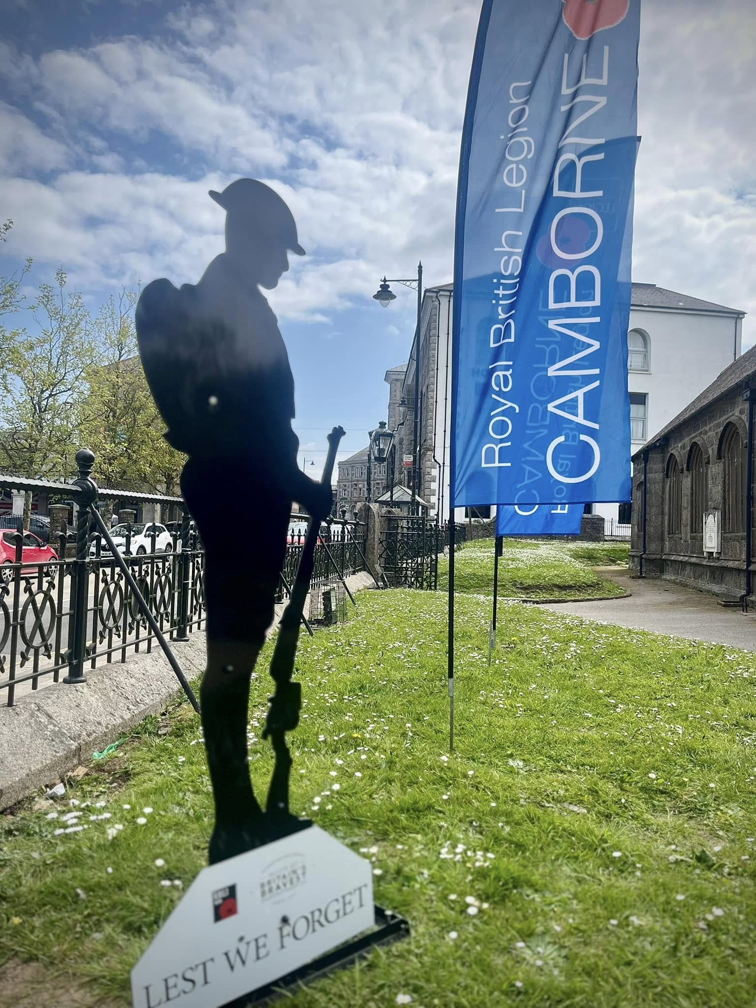 Later at approximately 10.45am, there was a service at the War Memorial at St Martin & St Meriadoc Church, Camborne with Camborne Branch of The Royal British Legion, following which Camborne Library hosted a street party for invited library users.