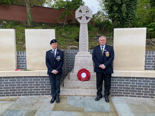 Left Branch Chairman Steve Evans and Secretary Gary Dolman lay our 100th Anniversary wreath at 0900 hrs Sat 15 May 2021
