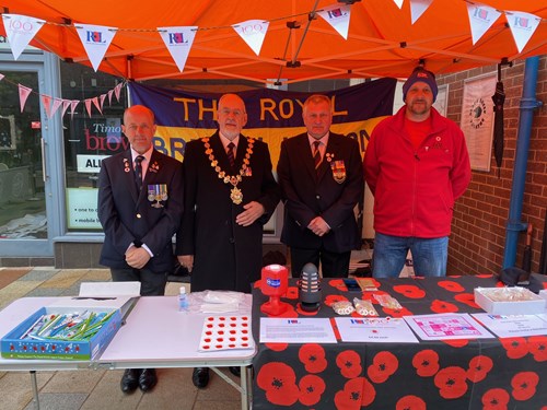 Congleton 100th Anniversary stall, Congleton Town Centre, Sat 15 May 2021. Great support from our town, although lots of people said we were early for the Poppy appeal !