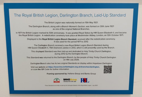 The Standard was framed and unveiled on Thursday 8th May 2025 at Darlington Hopetown Museum
