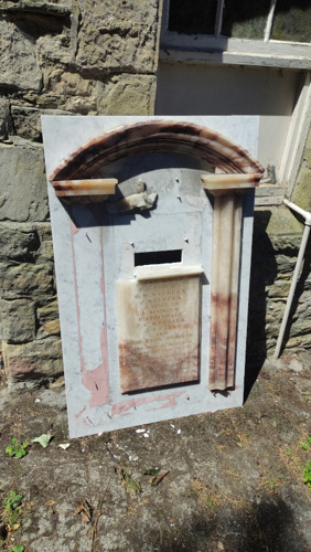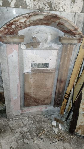 The overall condition of this war memorial is Very bad. Parts of the alabaster frame are severely damaged or missing and there is also what appears to have been a plaque above the inscriptions that is also missing
