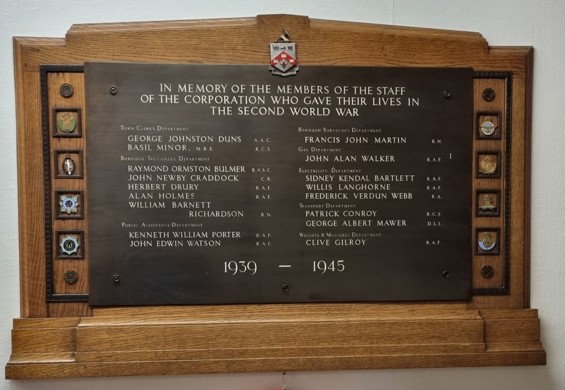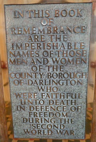 World War Two Memorial Plaque - Darlington Council Town Hall, Darlington