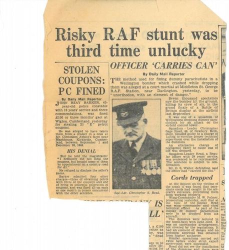 Killed in his Vickers Wellington Bomber aircraft (#HE743), when the aircraft exploded on take-off