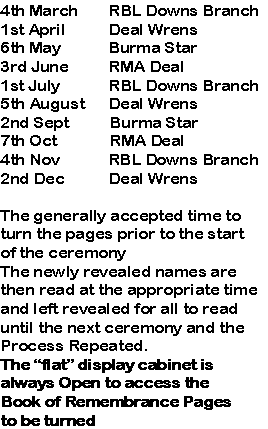 Below is a list of dates for your diary on what's happening in the branch of The Royal British Legion.