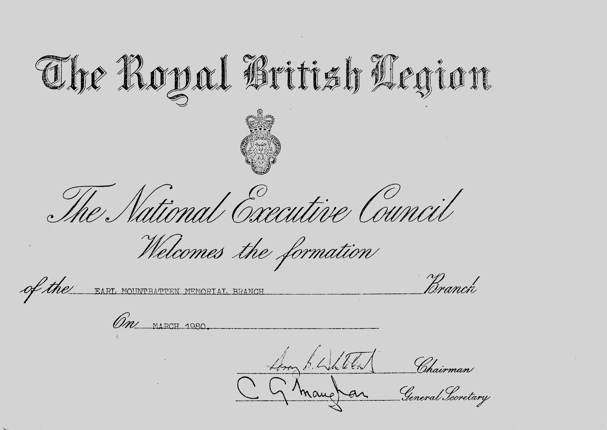 The Earl Mountbatten Memorial Branch was first established in March 1980 in memory of Lord Louis Mountbatten, following his death in August 1979 in Ireland.