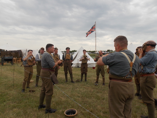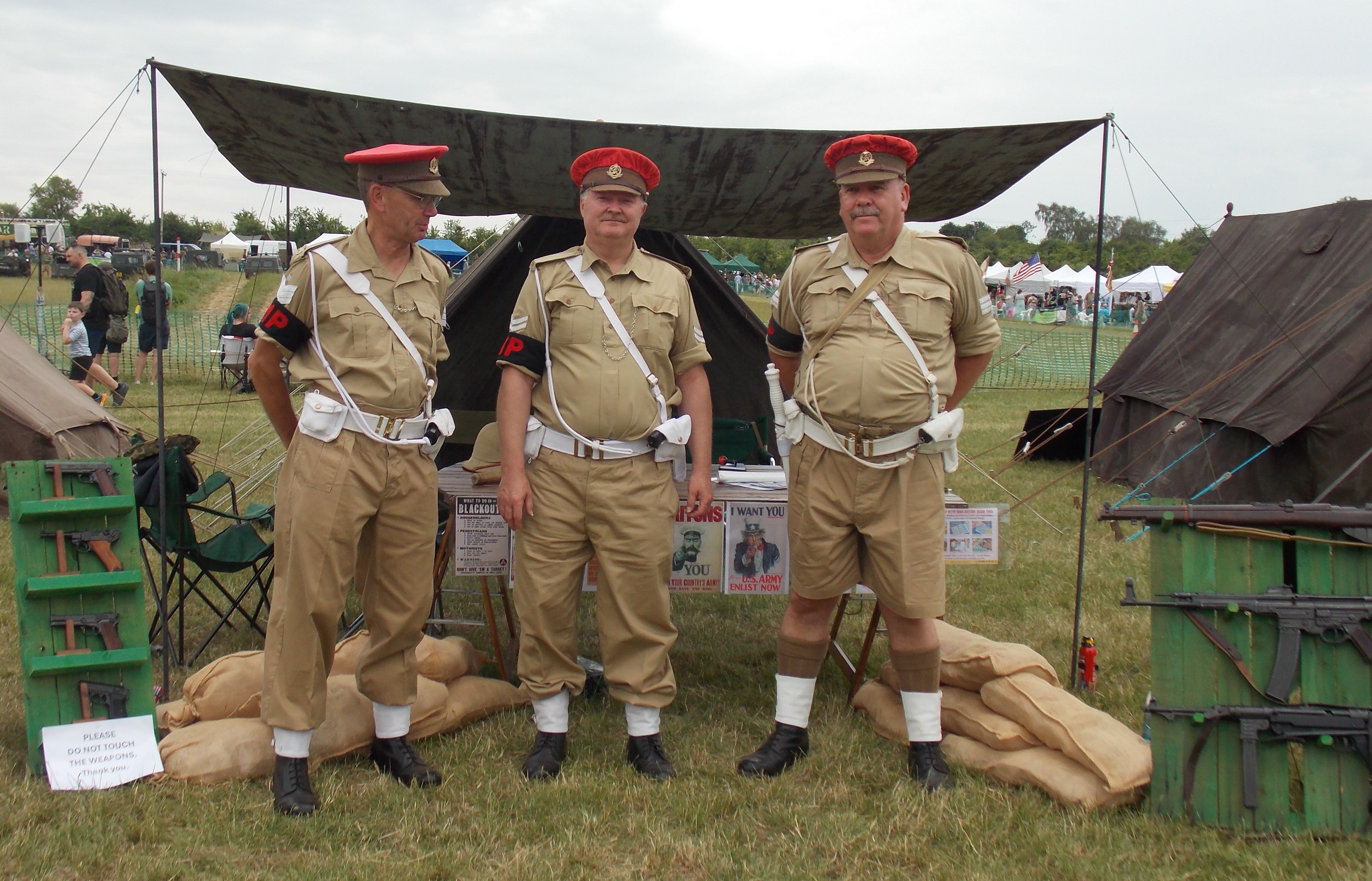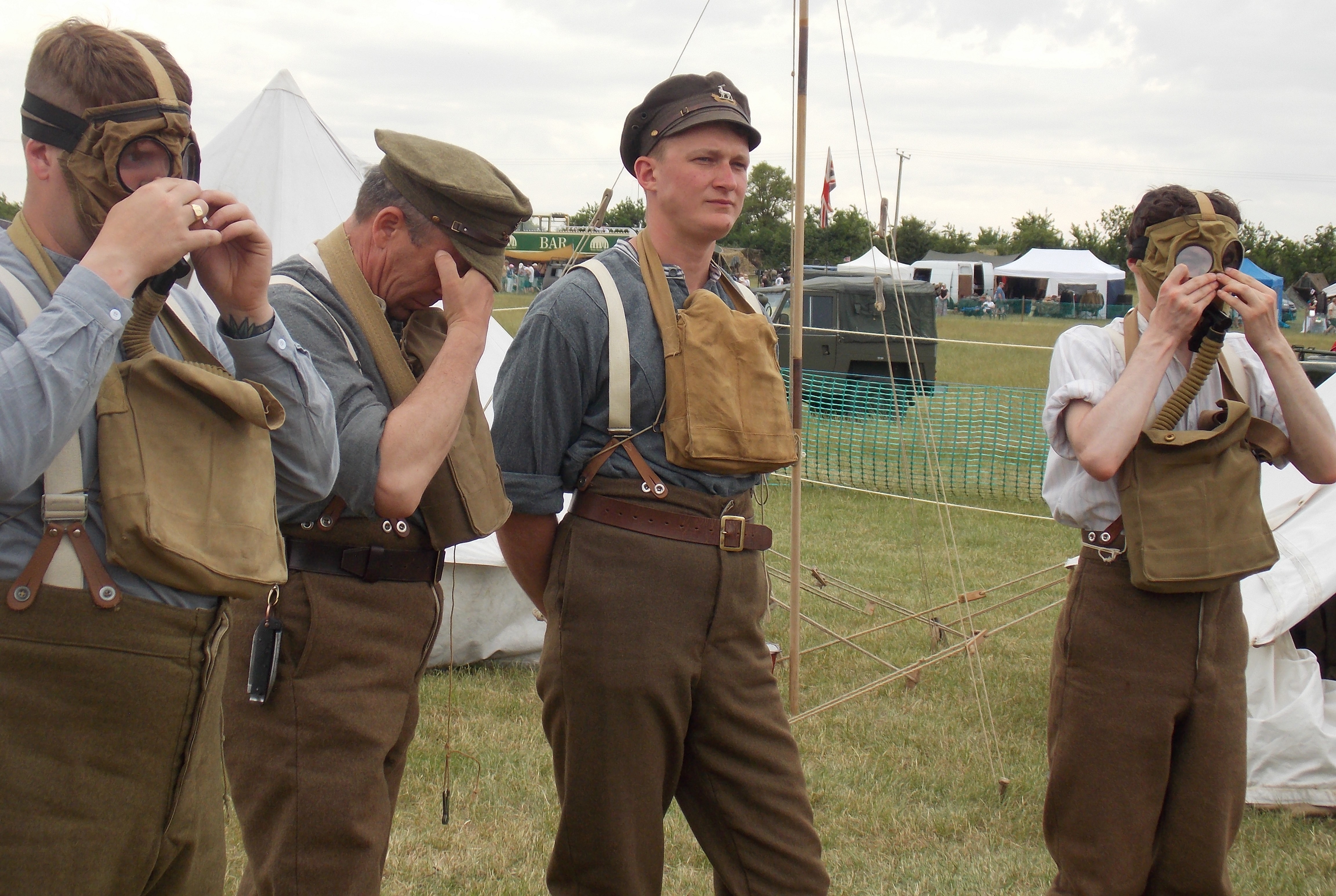 Wartime in the Vale 21 & 22 June 2025 Wartime in the Vale Royal British Legion Poppy Appeal stand Second World War Re-enactment MP Military Police First World War Instructor demonstrating how to fit a 1st World War gas mask