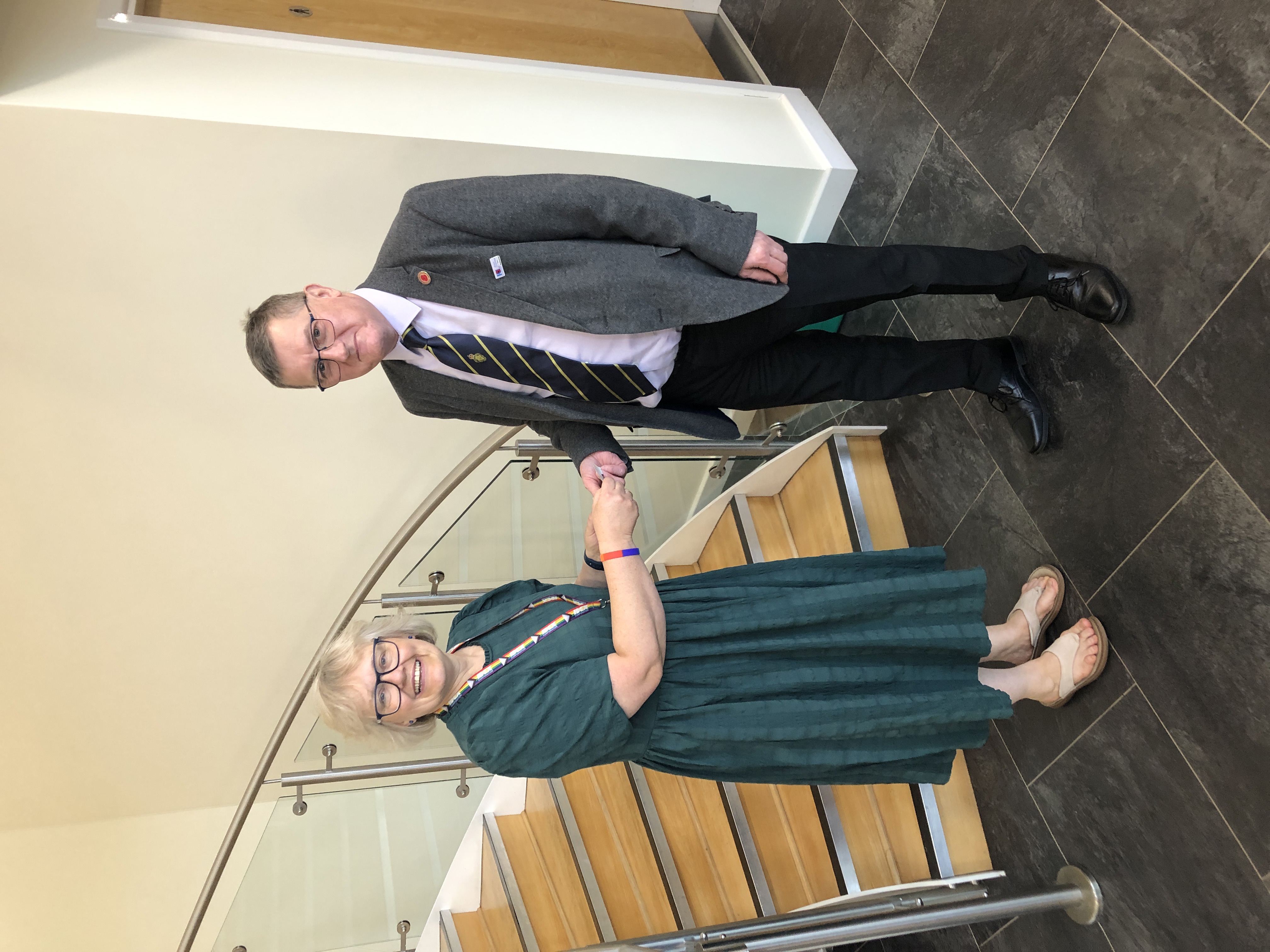 Judy Cox Receptionist & Executive Assistant Mr Terry Healey RBL Committee member excepting the donation on behalf of Evesham & District Branch.