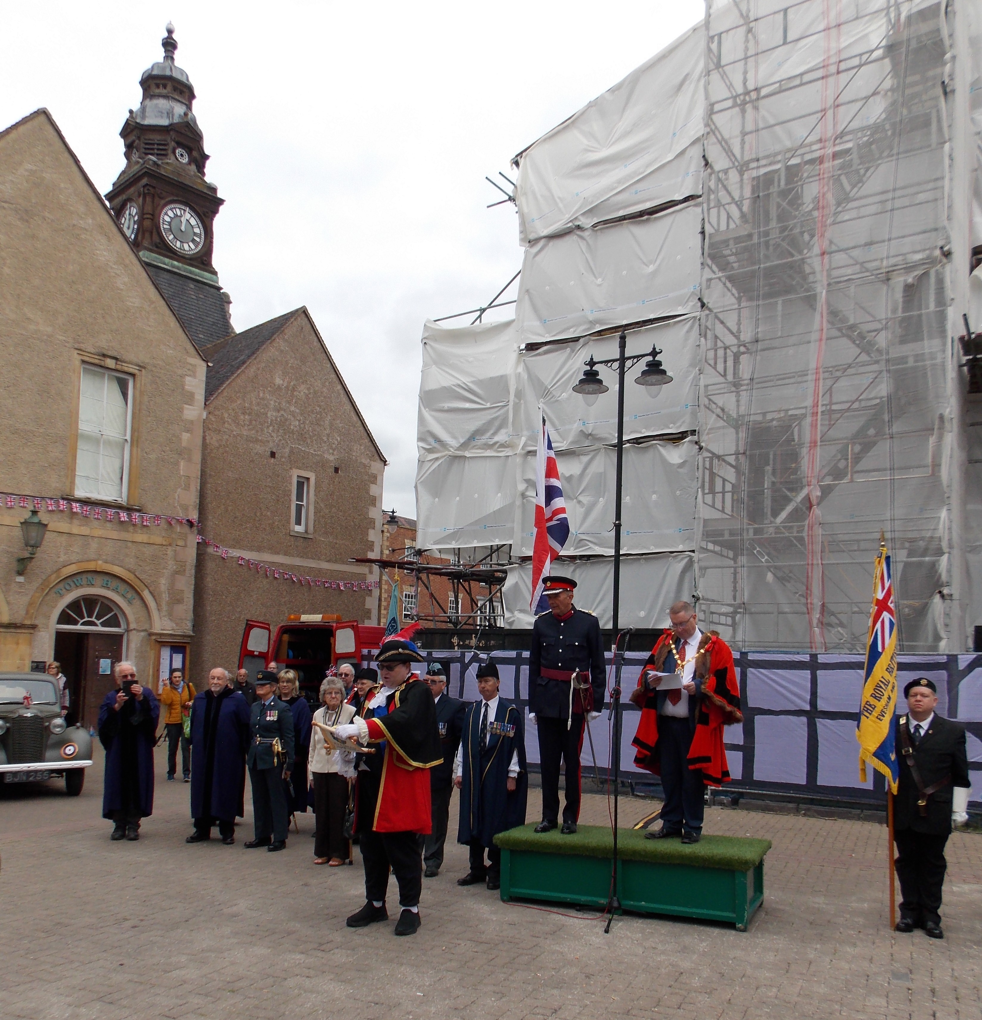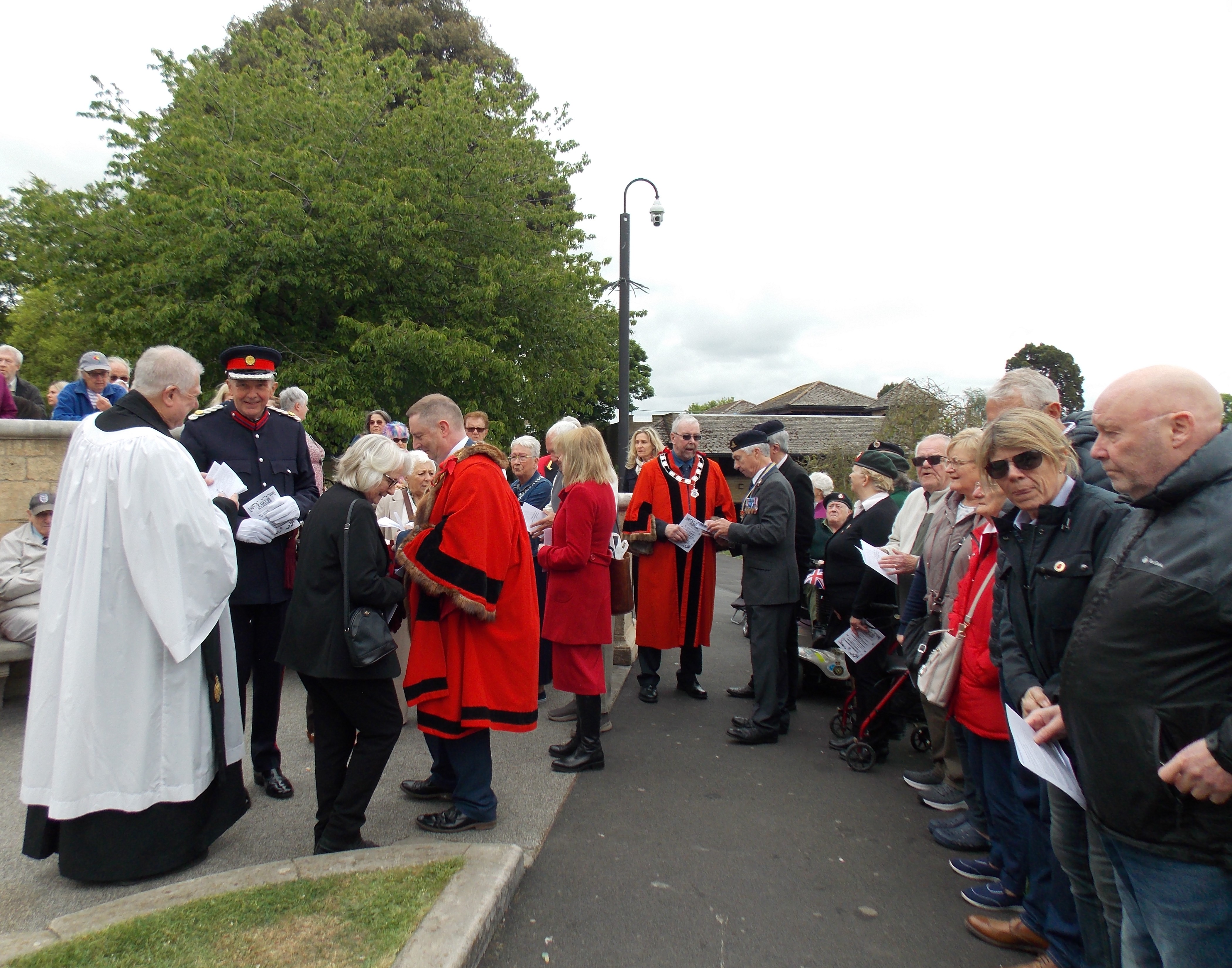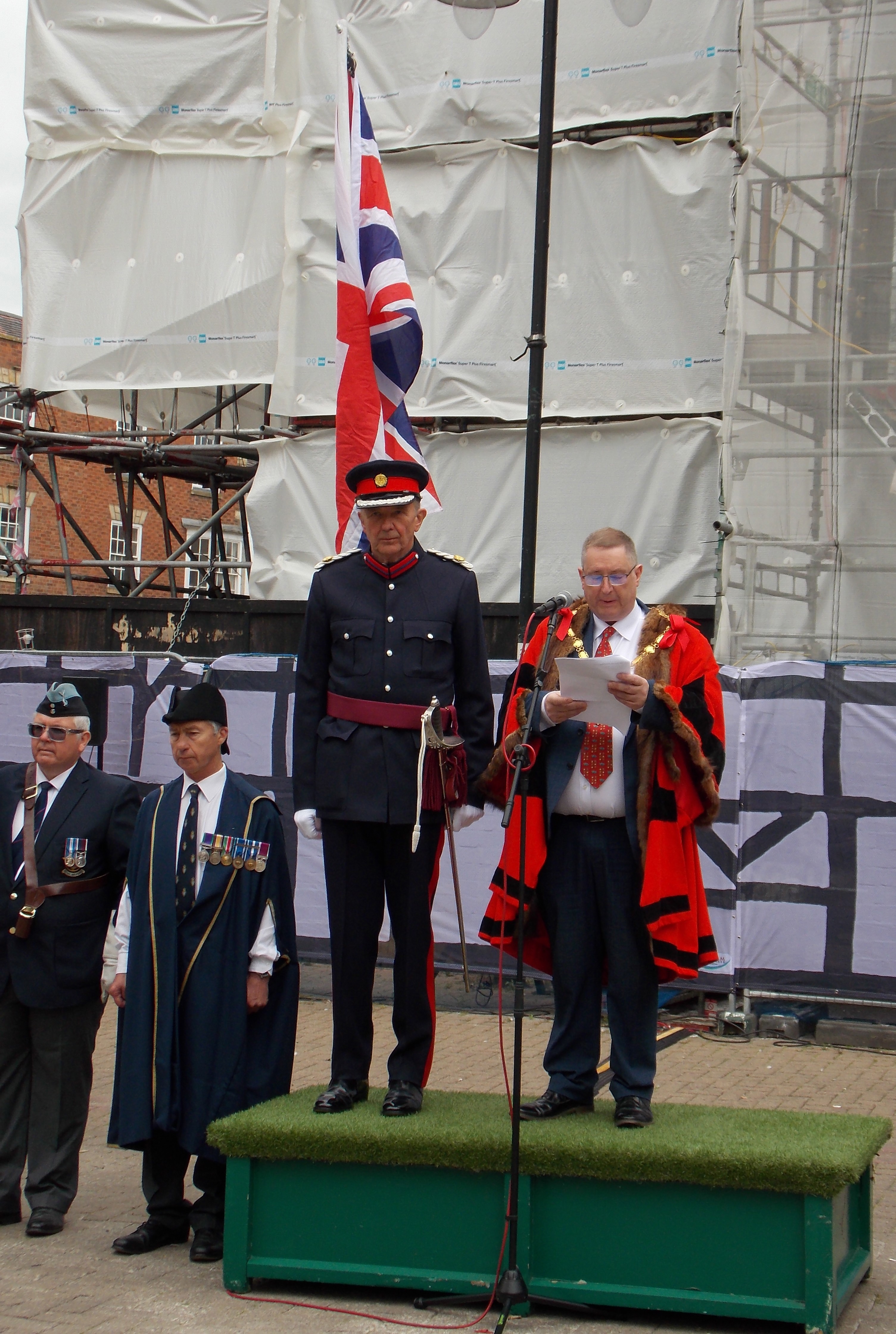 Deputy Lord Lieutenant of Worcestershire read an extract from the address to the 'Nation 8th May 1945' that was originally given by 'His Majesty King George VI'
