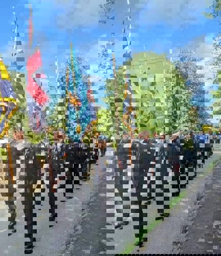The Annual Church Parade was held at Holy Trinity, Bicton on Sunday 9th June, 2024 which was attended by the County Parade Marshall, County and Branch Standards, and Porthywaen Silver Band, with the salute being taken by past President, Mr Robin Oake.