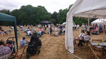 This was a 'vintage' tea party where over 250 people were entertained by Cottenham Brass Band and tea ,scones and strawberries served by Fulbourn WI.