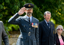 RAF Honington Station Commander Gp Capt Dutch Holland takes the salute at the memorial for Wg Cdr Nigel Elsdon