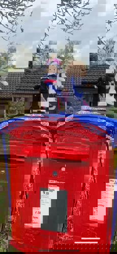 - Knitted displays on local post boxes courtesy of Village Stiches on