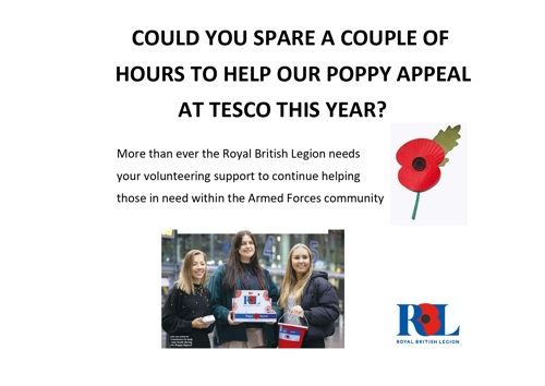 We always need volunteers to help our collections at Tesco in late October / early November.