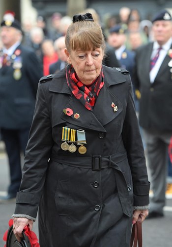 Hundreds gathered to watch the large Remembrance Parade march through the streets of Horncastle led by the Banovallum Brass Band. The parade halted in front of the War Memorial Hospital for the wreath laying service and two minutes silence.