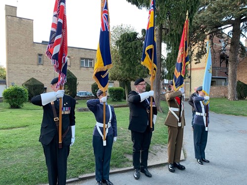 At 6.30pm the church bells start to ring out joining the ringing of all church bells across the country. The Standards were paraded into a packed church before the service began.