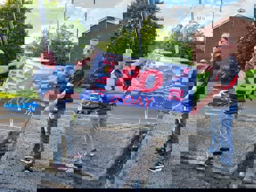 Branch Chairman; Stuart Clarke and Committee Member; Alan Dill prepare to hoist the D-Day Flag.