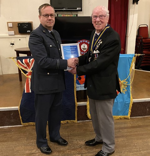 In February 2026, Llandudno RBL welcomed 418 (Aberconwy) Squadron Air Training Corps to reaffirm the long-standing affiliation between the two organisations. It was also an opportunity to award Cadet Sergeant Morris of the ATC the Roy Gambrill shield for ‘Best Cadet’ in 2025 after raising £469.41 for the Poppy Appeal. Other presentations were made to the new Chair, Mr Gordon Woodyatt, and stalwart Poppy Appeal collectors Morfydd and Helen. Well done to you all.