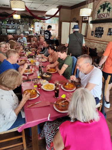 On Wednesday 9 October 2024 the Loja Branch met for an informal meal at Meson Atila in Salar. The meal was attended by 20 members and their guests and our thanks go to Gordon and Pauline Holme for organising the event and for providing the many raffle prizes. A few photos are included below.