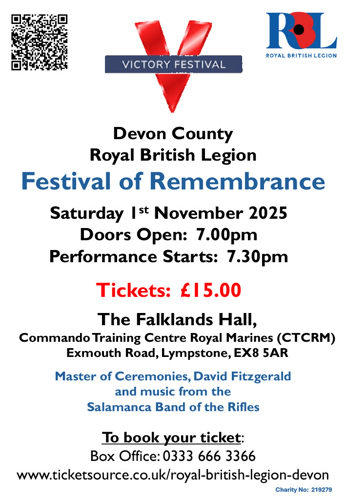 Online: Devon Festival of Remembrance (www.ticketsource.co.uk/royal-british-legion-devon)