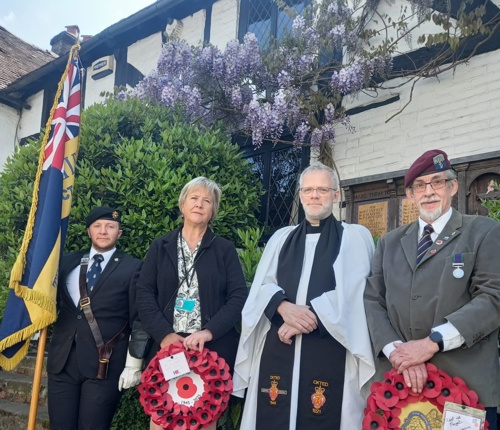 On this 80th Anniversary of Victory in Europe it is important to remember the sacrifices made by the wartime generation that enables us all to live today in peace and freedom. As the Chairman of the Oxted & District Branch of the Royal British Legion, I am grateful to members of the Parish Council, Veterans, my Branch Committee and the Clergy for enabling three short Ceremonies of Remembrance to take place today at the War Memorials in Oxted, Old Oxted and Hurst Green. At Oxted, also present were members of the Women’s Section Branch.