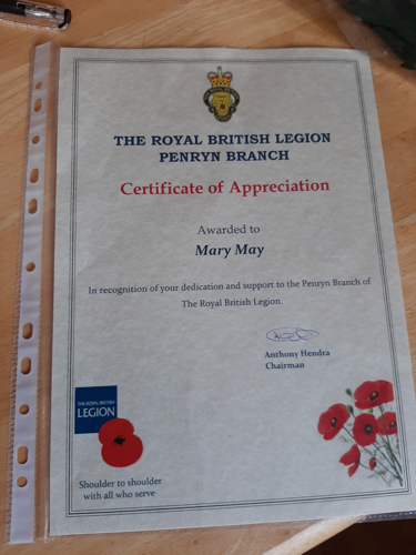 On Sunday, as Chairman of Penryn RBL, I had the privilege of presenting some Certificates of Appreciation on behalf of Penryn Branch to some amazing ladies, three of whom are Branch members.