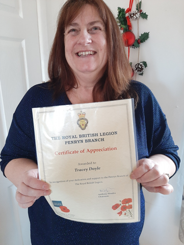 Tracey Doyle, Branch Membership Secretary, for her work on Facebook with VE Day, VJ Day, Poppies for Windows & Advent Angels.
