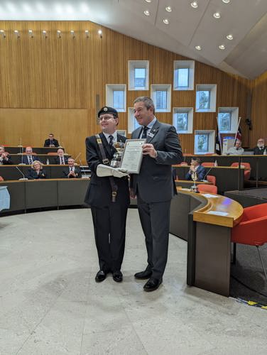Matt Barringer second place trophy for Standard Bearer competition and County Certificate of Merit.