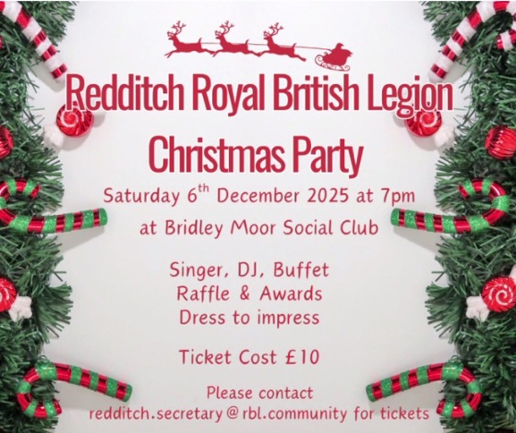 Christmas Party & Awards will be held on Saturday 6th December at 7pm at Bridley Moor Social Club, Bridley Moor Road, Redditch. B97 6HS.