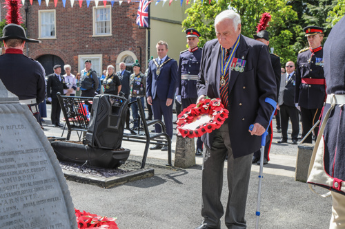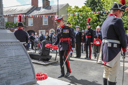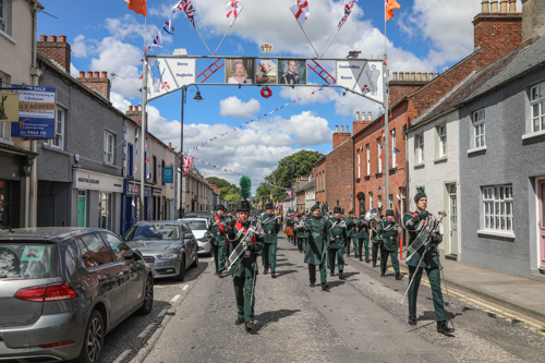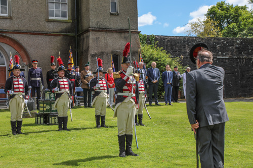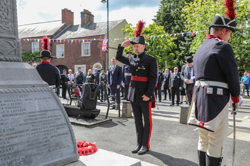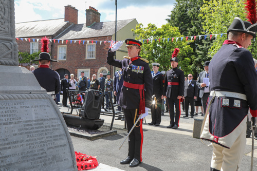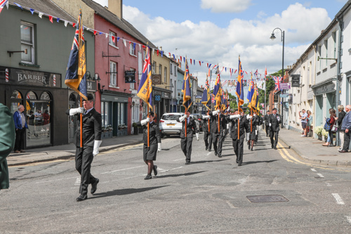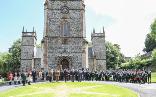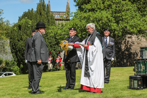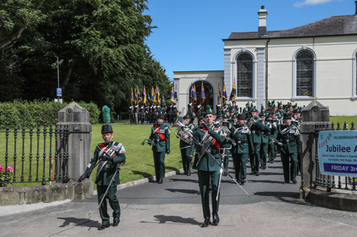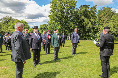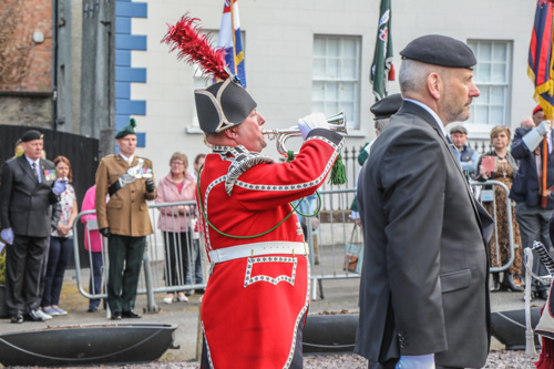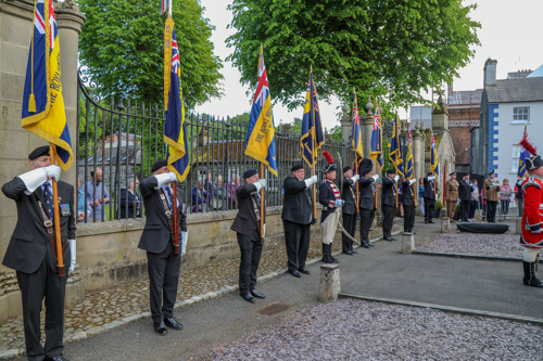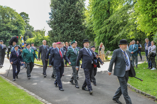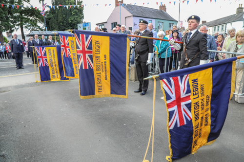 On Sunday 29th May 2022, Our new branch standard was dedicated at a superb open air service beside the historic Hillsborough Fort. We were very privileged to have the Bugles, Band, Pipes and Drums of 2nd Battalion Royal Irish Regiment to lead the parade. The standard was blessed bt Rev Sam McVeigh MBE TD , NI RBL chaplain and presented by Gawn Hamilton Esq, Lord Lieutenant for Co Down. Also present were Stephen Martin, Mayor of Lisburn and Castlereagh City Council, Lord Downshire and other dignitaries from the Armed Forces and Royal British Legion
