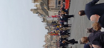 The day begins in Star Lane with a march led along Broad Street to the War Memorial. At the War Memorial they are met by the Town Mayor and Councillors, the Lord Lieutenant (or his Deputy), other members of the Civic Party and senior military officers, all on the balcony of Browne’s Hospital above the War Memorial. A crowd of several thousand members of the public and children’s groups will also have been gathering there since early morning.