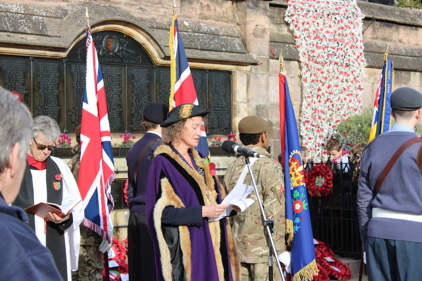 The Town Mayor lays the first wreath, followed by senior officers of the three Armed Services, and the President of the Royal British Legion in Stamford. Further wreaths are then on behalf of other ex-Service organisations, the Cadet Troops, civilian uniformed services, charitable groups, youth organisations, and by members of the public.