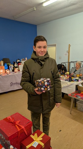 The tombola was the biggest success, with our first prize going within 10 minutes of the stall opening. Here is the winner of the first prize: