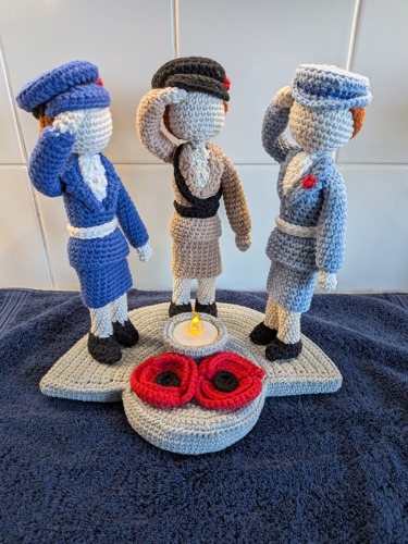 Unfortunately, our second raffle prize wasn't as successful. We didn't have enough ticket sales for this crocheted set of 3 servicewomen, which was handmade by the wife of the Chairman.