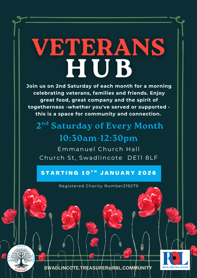 Veterans Hub Updated 06/02/26 This is no longer associated with Swadlincote Royal British Legion. Please see the local newspaper "Swad Style" or visit the facebook page at https://www.facebook.com/profile.php?id=61586258164441 for latest information.