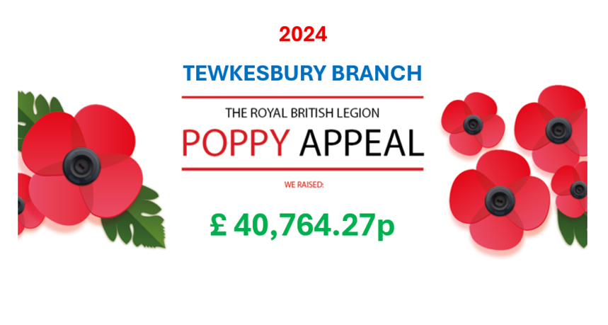 Bearing in mind that the 2024 - 2025 Poppy Appeal year still has 10 months to run, since 1st October in Tewkesbury and the surrounding area we have raised an amazing £38,779.87p